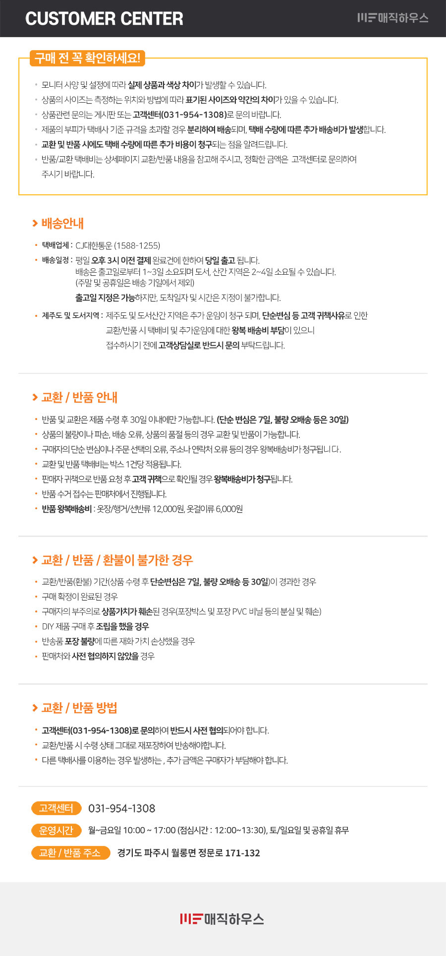 교환 및 반품안내